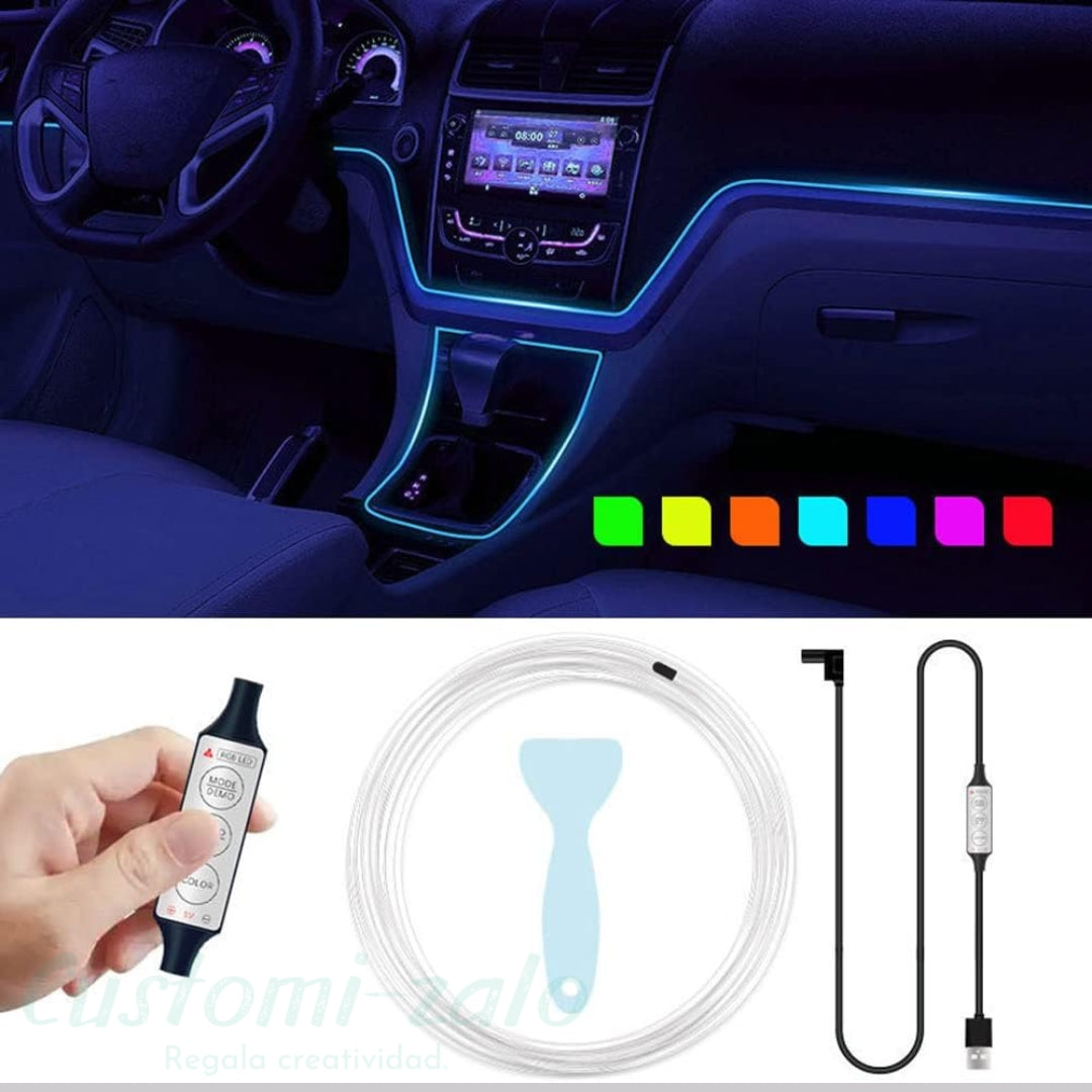 Dale un estilo moderno y personalizado a tu coche con esta tira de luz LED RGB, diseñada para crear una iluminación ambiental elegante y envolvente. Perfecta para mejorar la experiencia de conducción tanto de día como de noche.